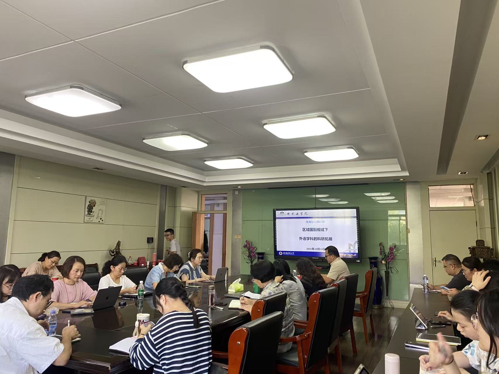 2025年10月10日下午,朱湘论坛第87讲在学院第一会议室举行,复旦大学外文学院教授陈靓应邀做了题为《区域国别视域下外语学科的科研规划和选题拓展》的讲座。讲座由学院副院长蔡静主持,部分教师和研究生代表参加。