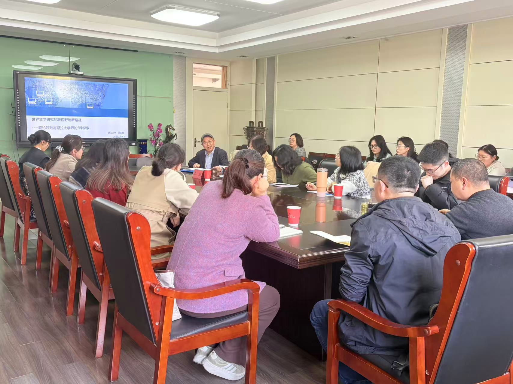2026年3月27日下午,外国语学院朱湘论坛第94讲在学院三楼第一会议室举行。本次论坛由外国语言研究所和“两江中心”联合主办,特邀浙江大学文科领军学者周启超教授主讲,以“世界文学研究的新视野与新路径”为主题,旨在帮助学院文学方向的教学与科研注入新动能,开拓新领域。论坛由外国语言文学所负责人韦虹教授主持,学院部分教师和研究生到场聆听并展开深入交流。