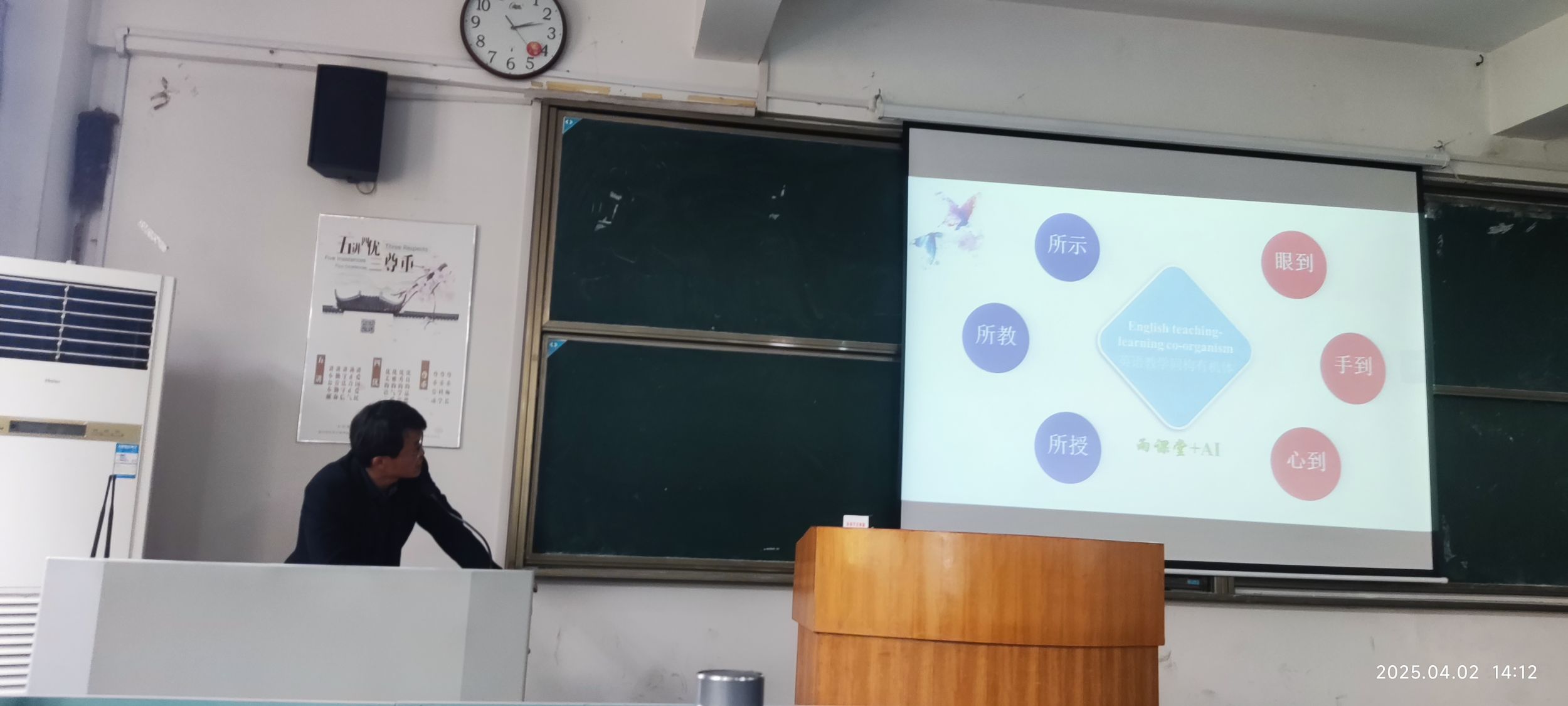4月2日下午,大学外语教学部夏道静和黄朝俊两位老师主讲的“雨课堂+AI 构建智慧教学新生态”教研工作坊在2090208教室成功举办。本次工作坊旨在探索智慧教学的新模式,帮助教师更好地利用现代技术提升教学效果。活动吸引了众多教师参与,现场气氛热烈,内容丰富,形式多样。活动由公外第三教研室主任郑高红老师主持,公外教学副院长张涛及大外部全体教师参加。