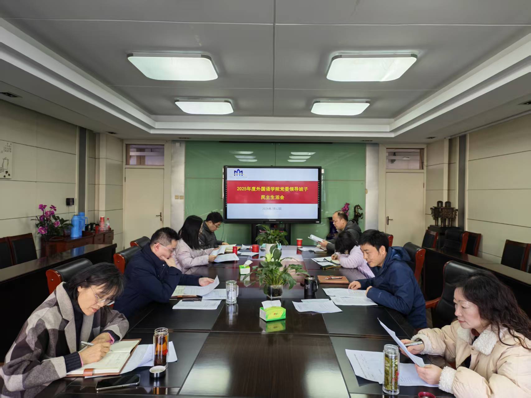 2月12日上午,学院在第一会议室召开2025年度党委领导班子民主生活会。学院党委班子全体成员参加会议,副处级组织员李碧鹰,副院长张涛、蔡静,院长助理王家根列席会议。会议由院党委书记戴和圣主持。