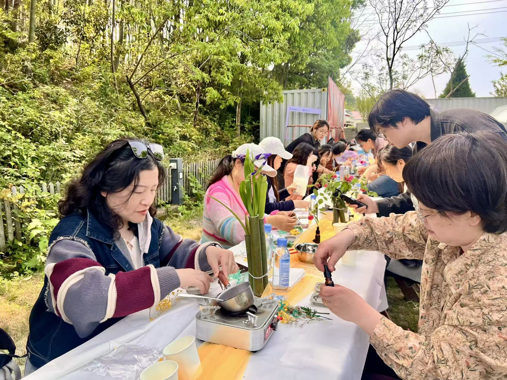 下午的活动充满文艺气息。在湖畔微风的吹拂下,老师们开启了手工DIY时光。制作香薰挂牌时,大家用干花点缀,各展巧思:有的追求极简留白,意境高远;有的偏爱繁复堆叠,拼凑出绚烂的春日图景。随着温润细腻的艾草膏逐一成型,空气中弥漫着淡淡的草本清香,大家互相展示着独具匠心的作品,心中满是成就感。