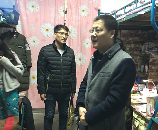 走访中,汪贻洋针对各个寝室的卫生情况、安全情况以及舍风情况,一一做出评价并提出了改善建议。对于部分寝室存在的卫生较差、通风不畅等问题,检查组也对寝室成员一一进行了教育,并要求他们现场打扫清理,保持健康卫生的生活习惯。在毕业班宿舍,汪贻洋还询问了大四毕业生的就业计划以及考研情况,提醒毕业生在外出求职和复试过程中注意人身财物安全。