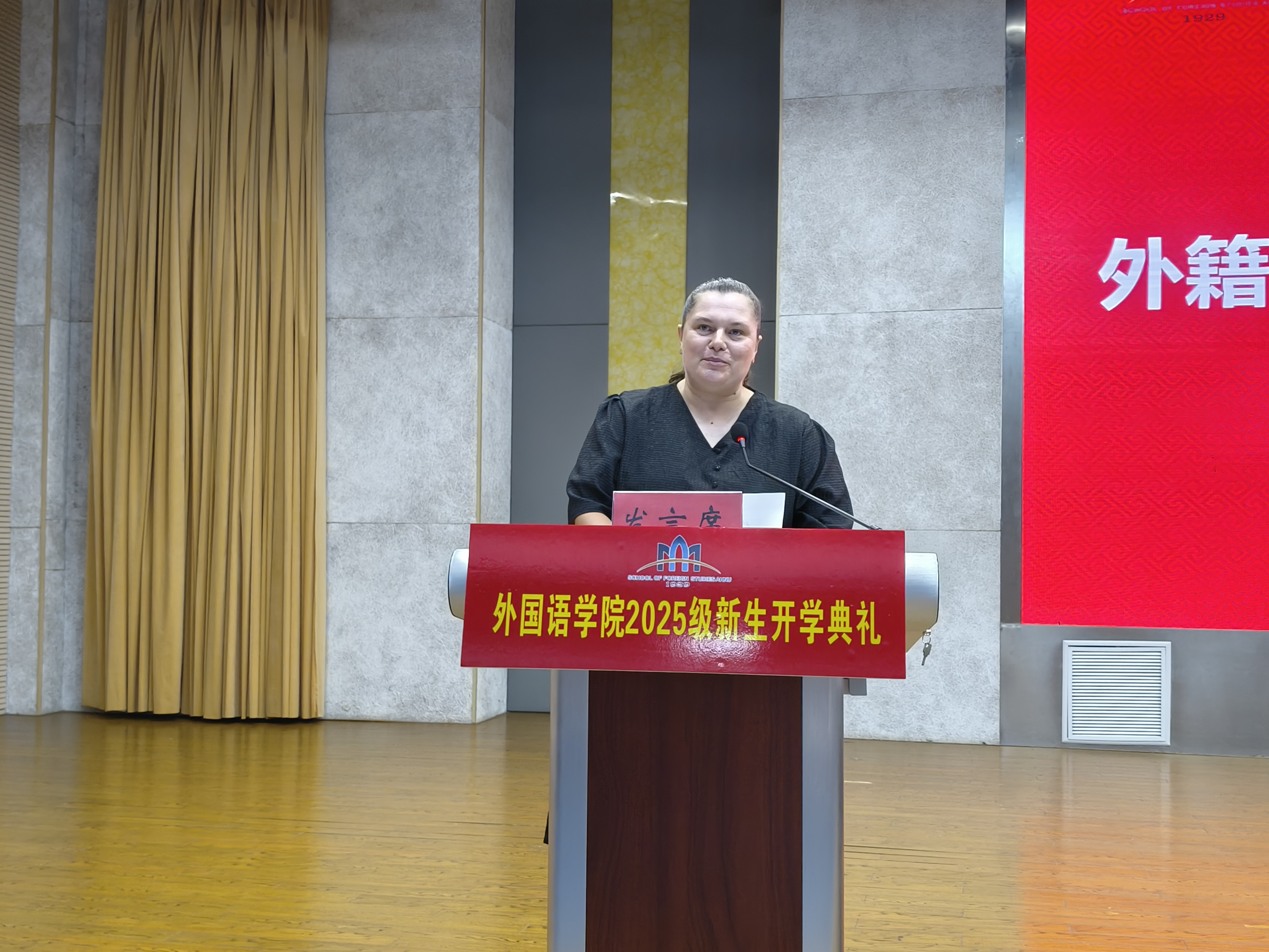 教师代表赵娜,结合自身从教心得,希望新生们既要秉持终身学习理念,不断夯实专业根基,适应时代发展需求,也要锻造强健体魄,磨炼坚韧不拔的意志,为长远发展奠定坚实基础。外籍教师代表阿琳娜用中俄双语向新生们表达了热烈的欢迎与殷切期望,鼓励同学们从学会做人、做事开始,不断超越自我极限,努力提升自我。