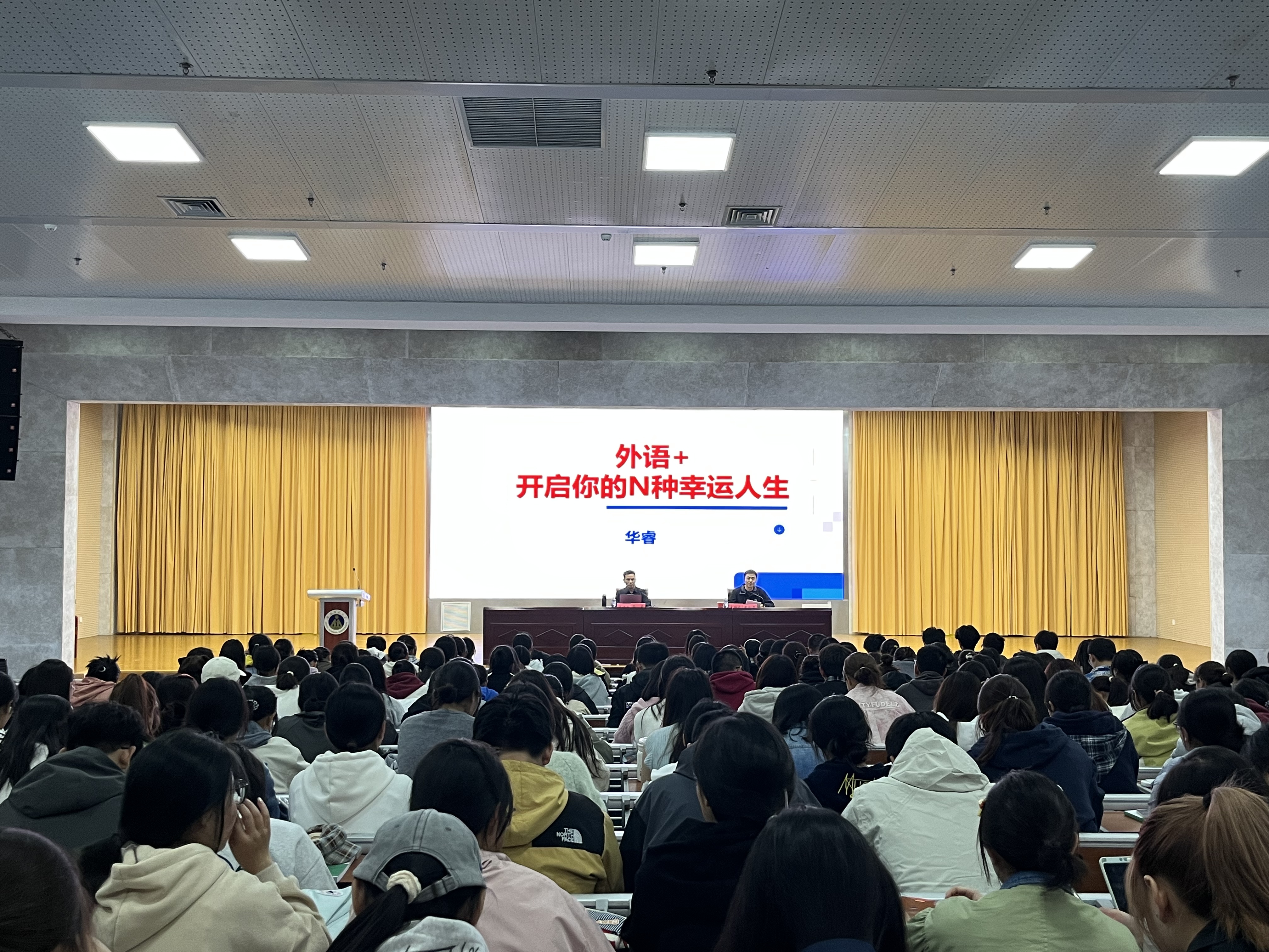 讲座中,华睿教授以《“外语+”开启你的N种幸运人生》为主题,围绕四大核心维度展开深度阐释:一是立足时代背景,解析人工智能时代的发展特征与人类社会变革趋势;二是聚焦专业发展,剖析人工智能浪潮为外语学子带来的全新机遇与挑战;三是结合实践案例,以“外语+传播”为典型范例,漫谈外语人才的跨界发展应对策略;四是紧扣教育转型,探讨“外语+”理念对高校外语专业教与学模式革新的倒逼作用。整场讲座紧密结合当下热点,以鲜活的身边人、身边事为切入点,生动阐释了新时代外语人树立“外语+”思维的重要性,引导新生以外语为核心媒介,在多领域深耕细作、实现多元复合型成长。