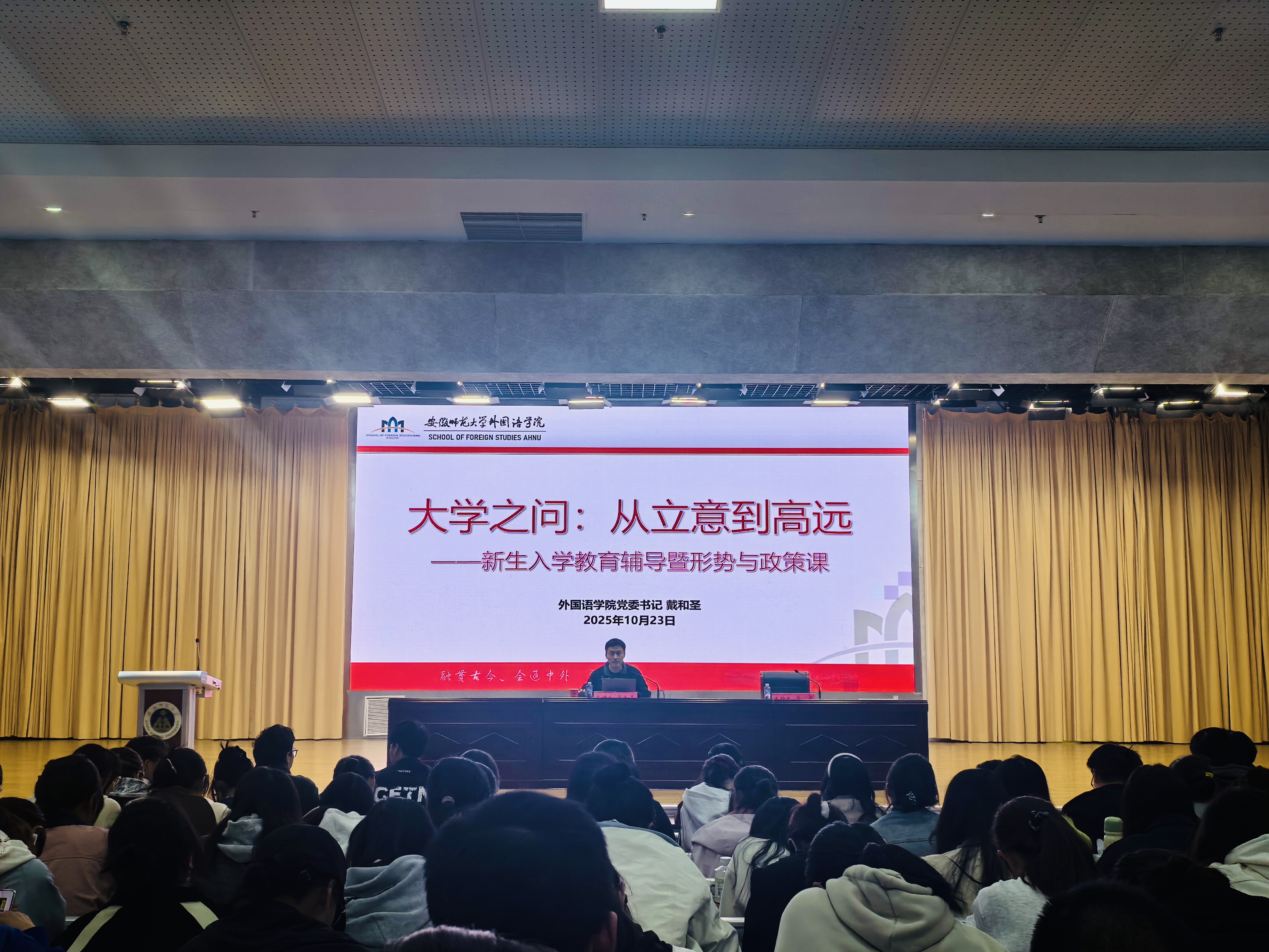 10月23日晚,学院党委书记戴和圣以《大学之问:从立意到高远》为主题,为2025级本科新生开展了一场深刻而生动的入学教育辅导暨形势与政策课。