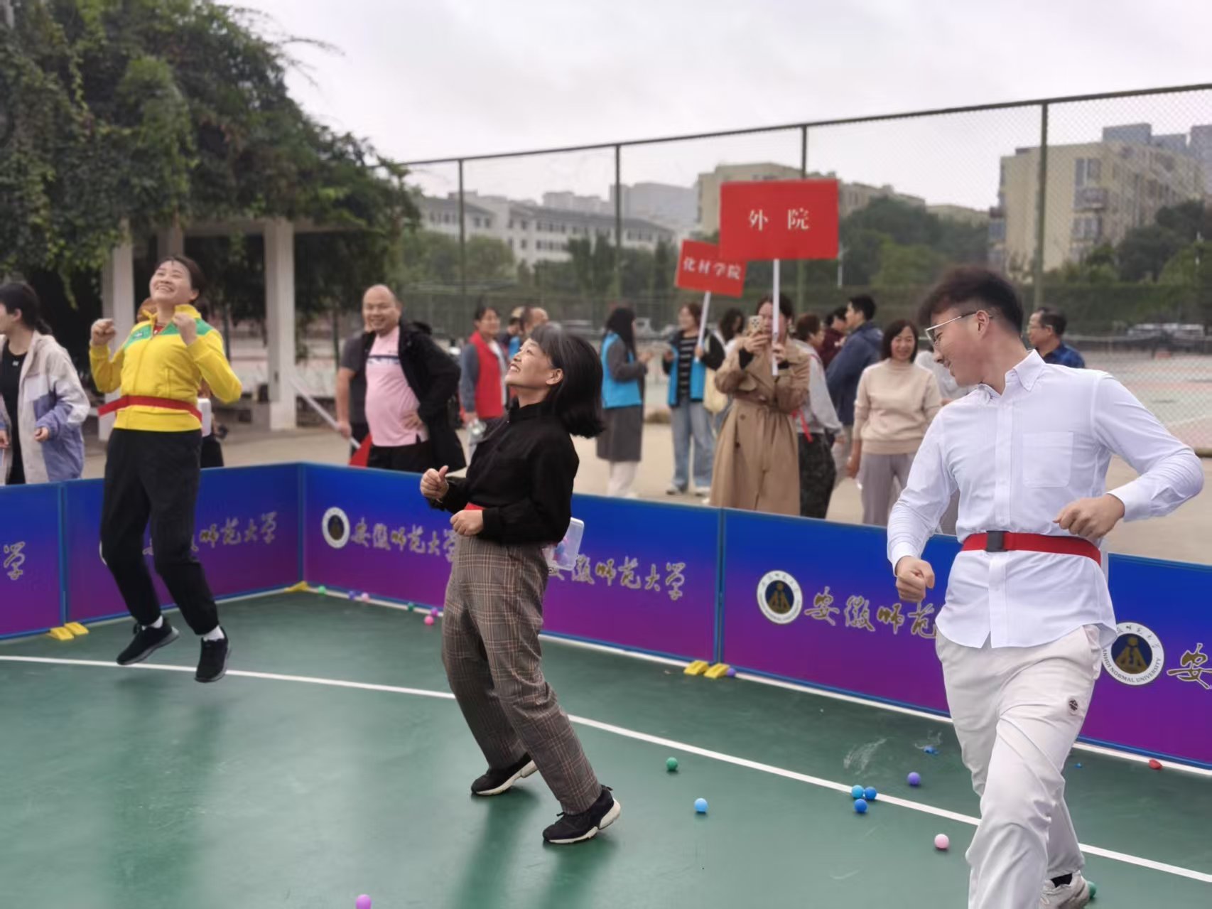 学院教职工通力合作,飞镖投掷精准有力、足球射门脚法精湛、拔河比赛同心协力,赛出水平、赛出风采、赛出团结,顺利完成教工组项目。“在赛场上享受到了奔跑跳跃、你追我赶、拼尽全力的感觉,这就是运动的魅力所在吧。”学院程琼老师在参加完教工组项目后由衷感慨道。