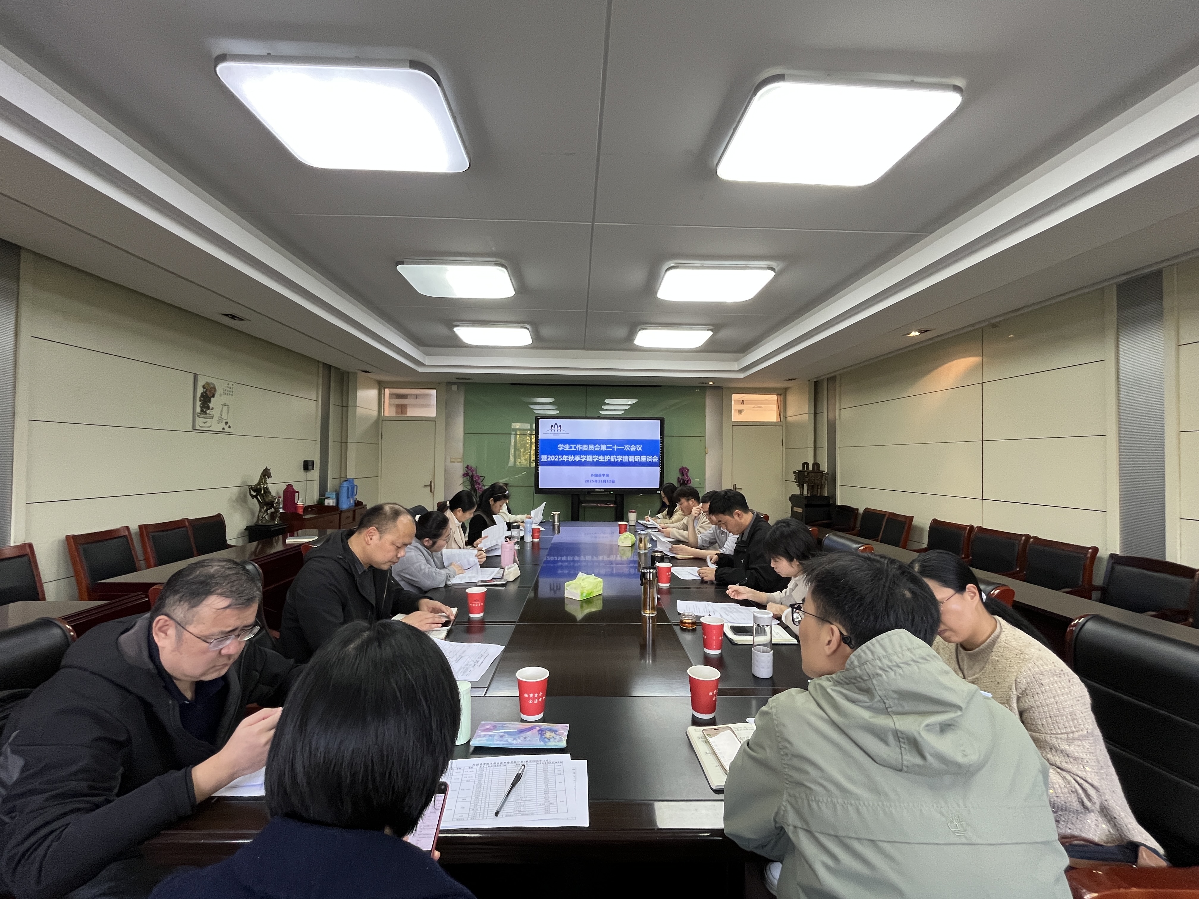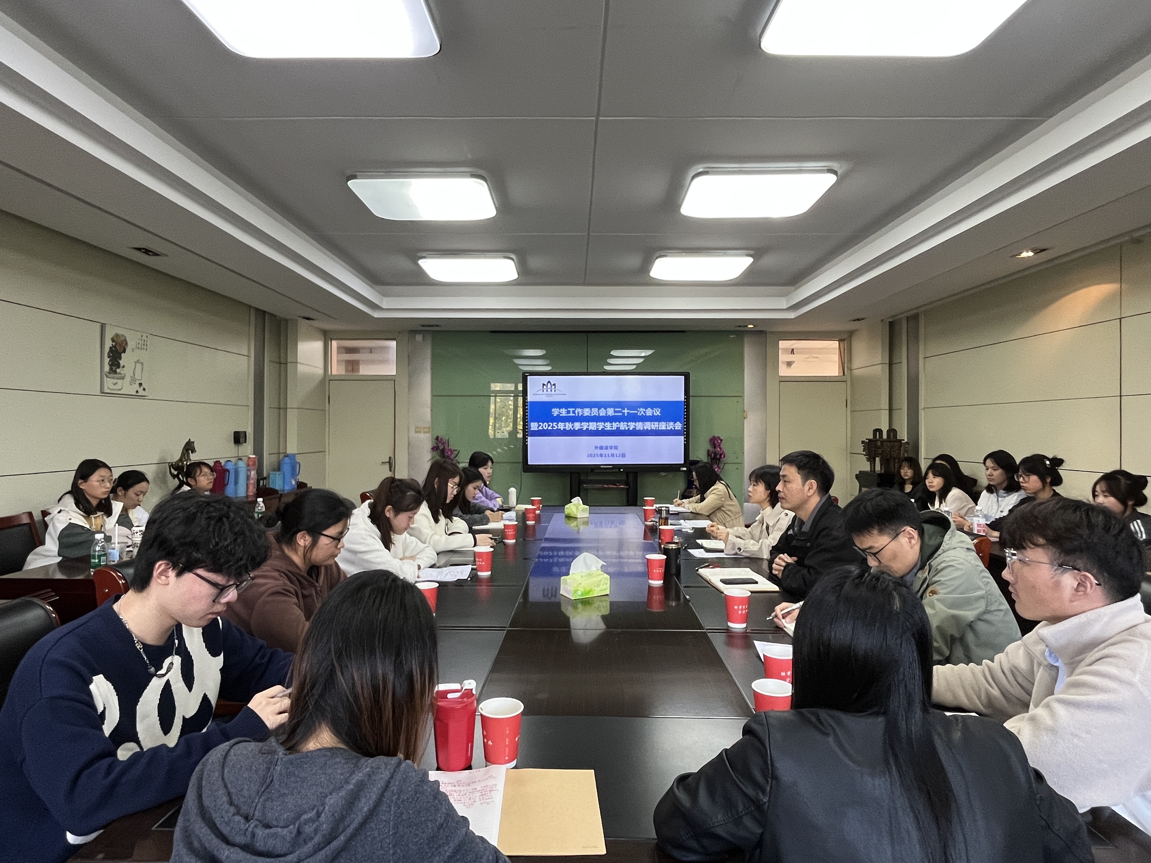 为进一步贯彻落实“大学生护航行动计划”,有针对性地做好学生日常管理和服务工作,学院于11月12日下午在第一会议室召开学生工作委员会第21次会议暨2025年秋季学期学生护航学情调研专题座谈会。学院党委书记戴和圣、院长张孝荣、党委副书记章姗姗、院长助理王家根,各专业主任、学位点负责人、教学秘书、研究生秘书,以及各年级辅导员、班级学生代表参加会议。会议由章姗姗主持。