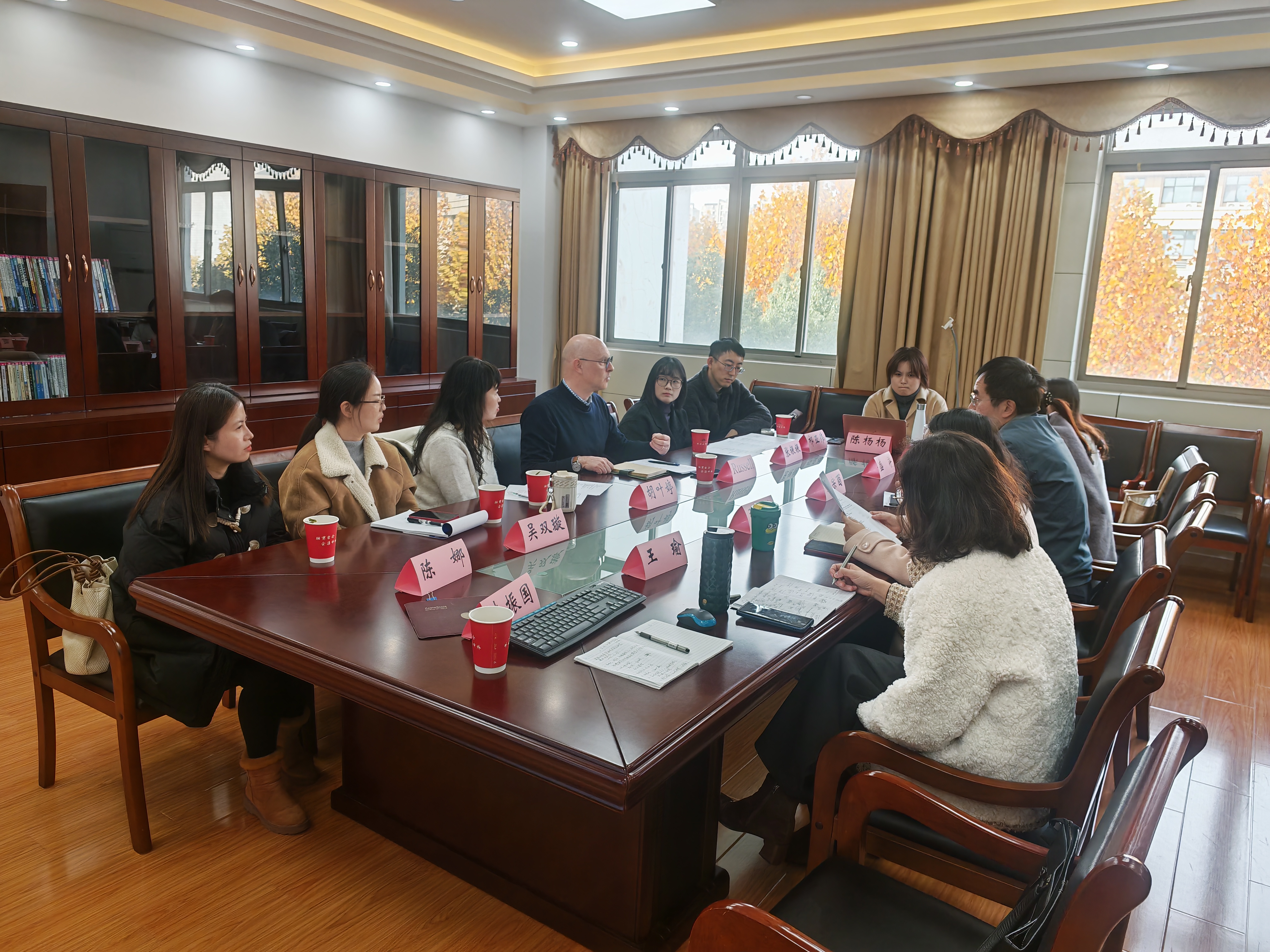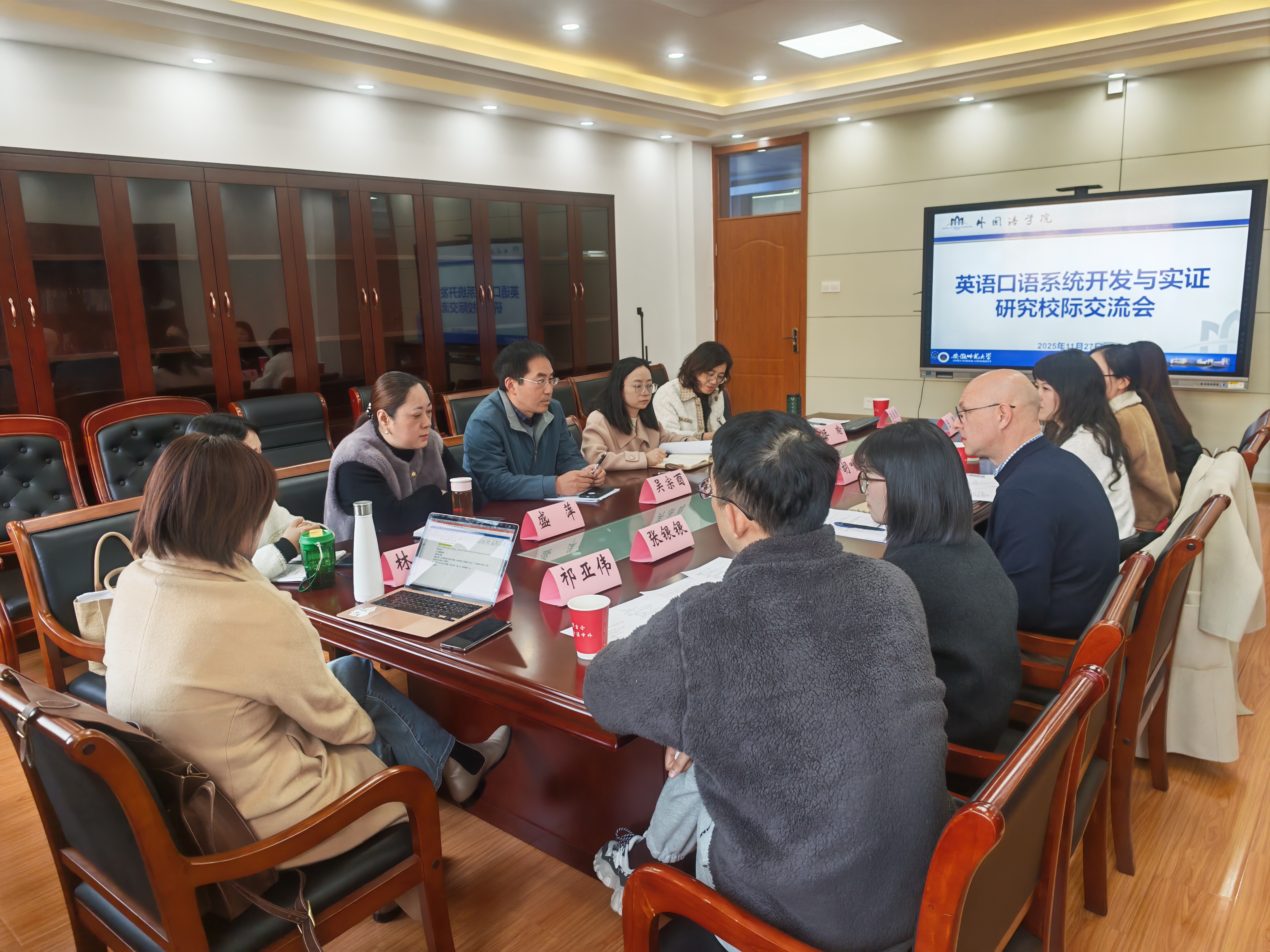 为积极响应学校“AI+高等教育”战略部署,深入推进智慧教育技术与外语教学的创新融合,11月27日下午,安徽信息工程学院通识教育与外国语学院副院长胡叶婷、外教Russell及教研室主任等一行来院调研,双方围绕“英语口语系统开发与实证研究”进行专题交流研讨。我校外国语学院副院长张涛、大学外语教学部教研室主任及部分骨干教师参加座谈。