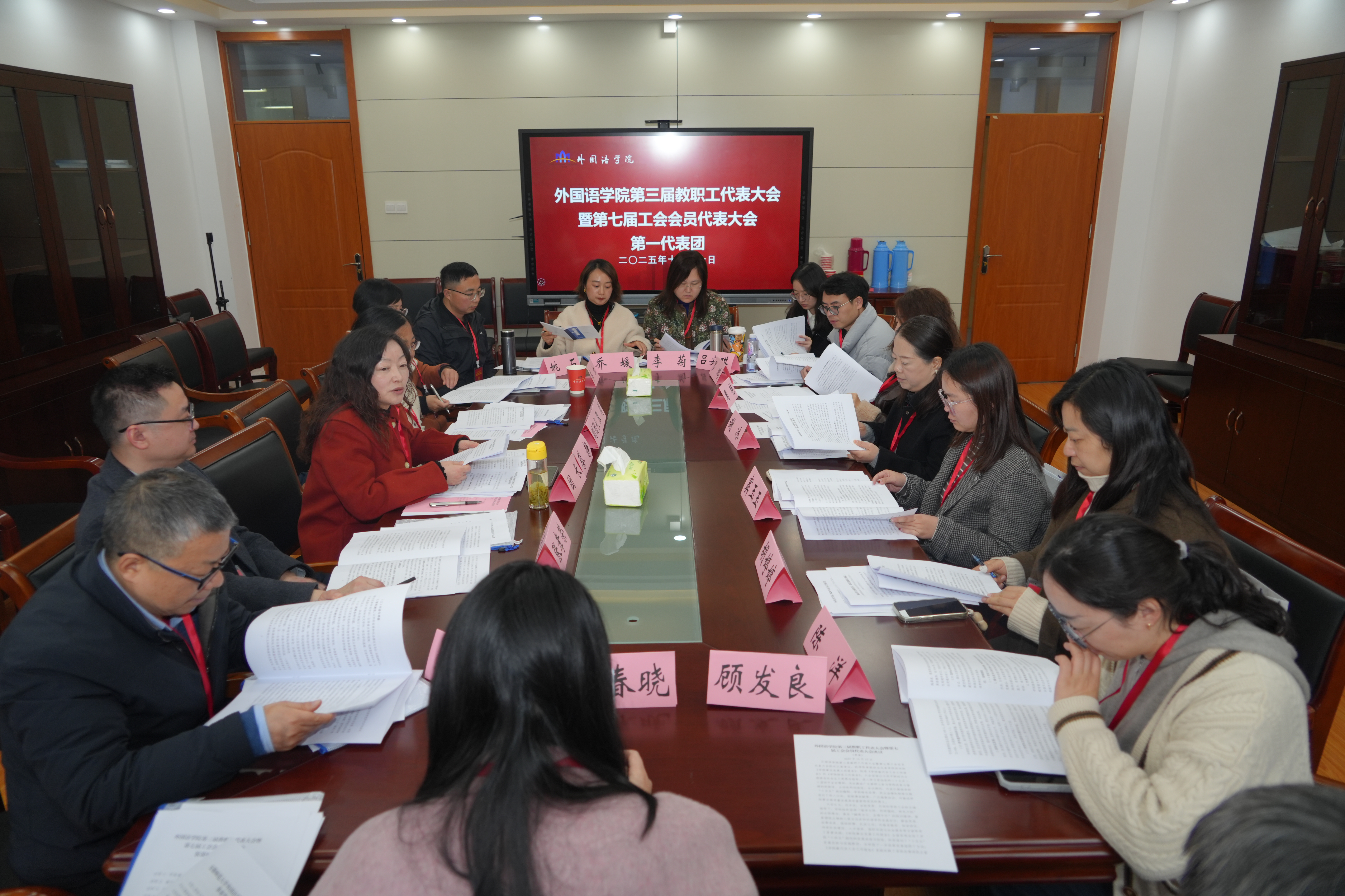 分组讨论会上,代表们围绕学院“十五五”发展规划(征求意见稿)展开深入研讨,积极建言献策;同时酝酿新一届教代会执行委员会、工会委员会候选人名单,以及总监票人、监票人建议名单和《大会决议(草案)》。分组讨论结束后,大会主席团召开会议,逐一听取各代表团团长关于讨论情况的汇报。