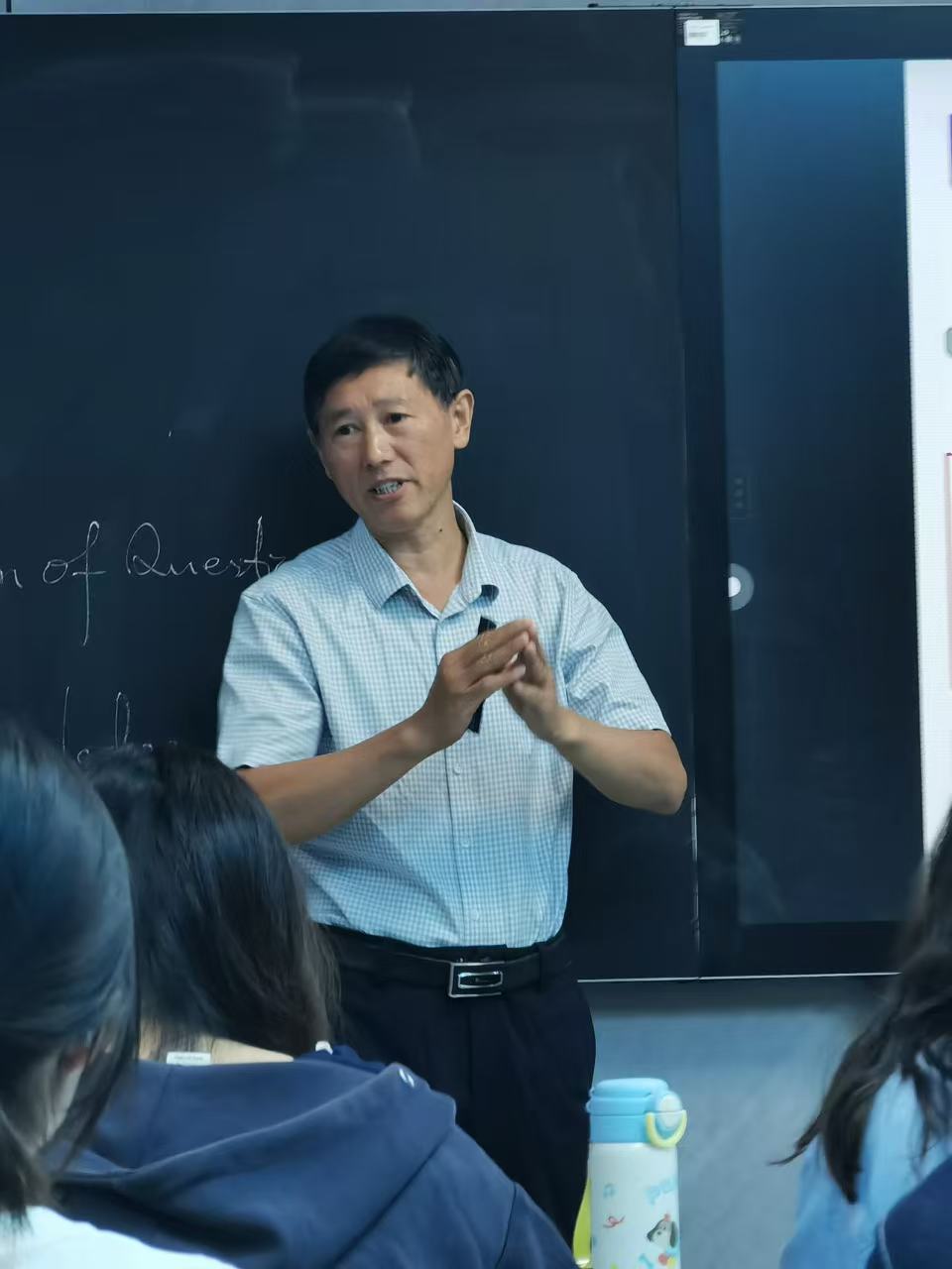 2025年10月14日上午第三节课,外国语学院英语系翻译教研室张德让教授在2090508-2教室举行笔译公开课,主题是“理解当代中国——政治术语的翻译思路与方法”。课程以《汉英翻译教程》第六单元为核心,聚焦中国特色社会主义事业的总体布局与战略布局。课前,同学们完成了“五位一体”的相关翻译作业。课堂上,张德让老师带领大家回顾AI提问链的学习方法,邀请同学分享并点评优秀译例,引导学生从“理解术语内涵”到“挖掘背景知识”、从“词汇考据”到“迁移创新”,构建起链条式思维路径。整堂课内容充实、互动热烈,不仅帮助学生深化了对中国特色政治话语的理解,也展示了AI赋能翻译教学的全新可能。