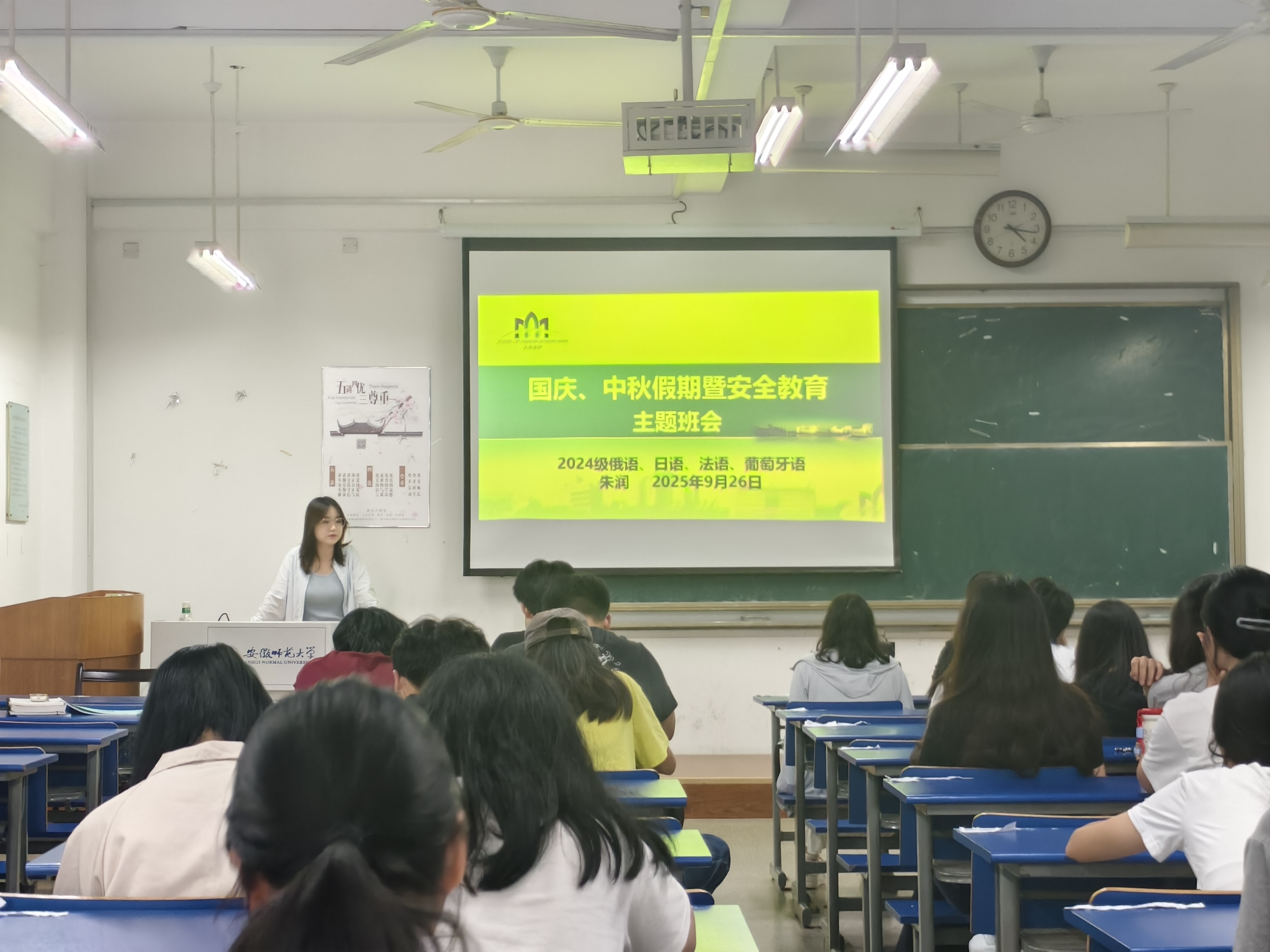 班会上,辅导员首先就国庆、中秋假期的具体放假安排、离返校时间节点及请销假制度流程向同学们进行了详细说明,着重强调了遵守校纪校规、履行正规请假手续的重要性,提醒同学们提前规划好假期行程,合理安排时间。针对离校途中及假期期间的安全问题,辅导员特别叮嘱同学们务必时刻将人身安全与财产安全放在首位,注意交通出行安全,妥善保管个人贵重物品。