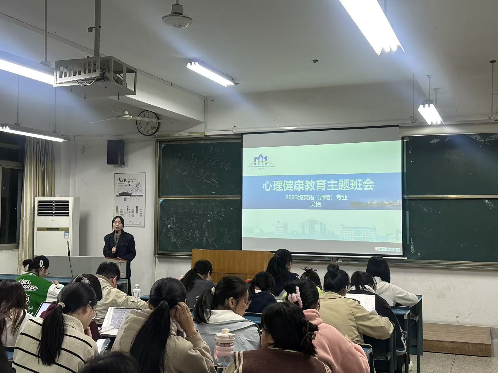 为切实提升学生心理健康素养,护航学生科学应对心理压力,2025年10月23日,2023级本科生在二楼报告厅召开“10•25心理健康教育”主题班会。本次班会由辅导员吴怡、朱猛主持,2023级全体本科生参与。