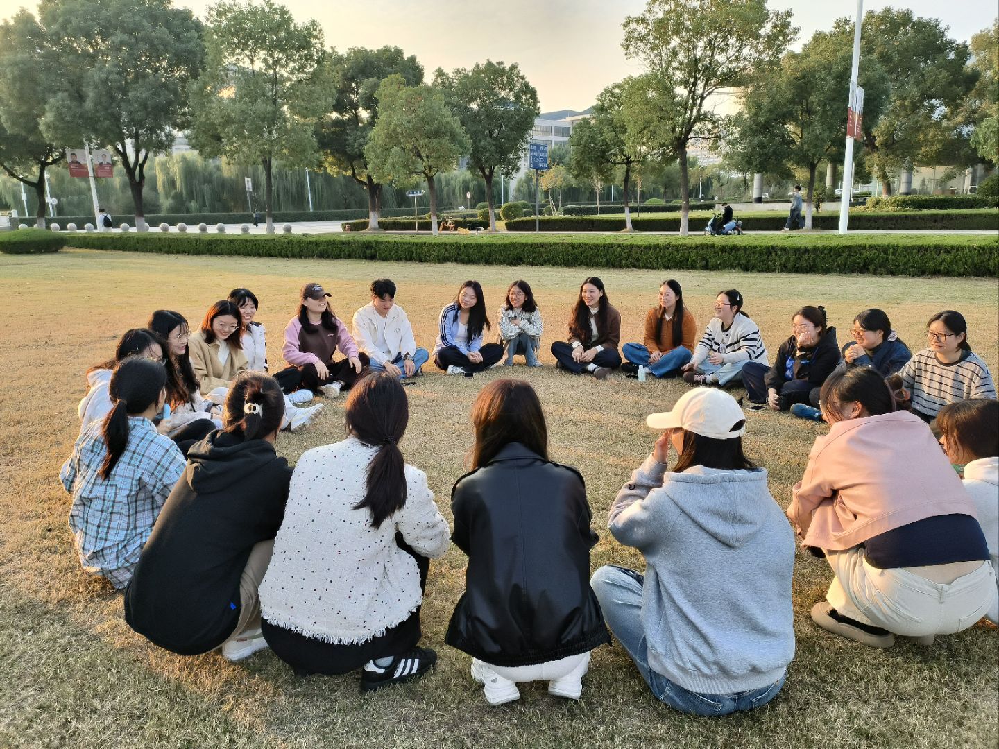 活动伊始,主持人朱志章和张子蕤介绍了活动流程、游戏规则及安全注意事项,迅速点燃了现场的氛围。随后,同学们通过现场报数完成分组,五支队伍正式组建。队员们很快就熟络起来,为即将到来的比拼凝聚起初始默契。趣味比拼环节好戏连台,五大游戏项目各有亮点。“数字抱团”作为开场游戏,迅速活跃了现场气氛。同学们随着主持人口令灵活跑动、快速成团,在紧张与欢笑中打破了最初的陌生感。“传话”游戏是一场默契与表达的双重考验。队员们屏息凝神,仔细传递每一句信息,在力求准确的过程中增强了彼此的了解和团队协作能力。经典“五人六足”项目则是对团队协作的极致挑战,各队队员肩并肩,脚绑脚,喊着“一二、一二”的整齐口号,迈着整齐的步伐向终点冲刺,彼此扶持的身影彰显着新生们的拼搏与团结。“你画我猜”环节中,同学们充分释放想象力与表现力,肢体比划与灵感碰撞交织,草坪上满是此起彼伏的笑声与欢呼声。最后的“击鼓传花”将整场活动推向高潮。随着音乐骤停,接到玩偶的同学大方展示才艺,精彩的即兴表演赢得了阵阵掌声,让彼此的距离在互动中进一步拉近。