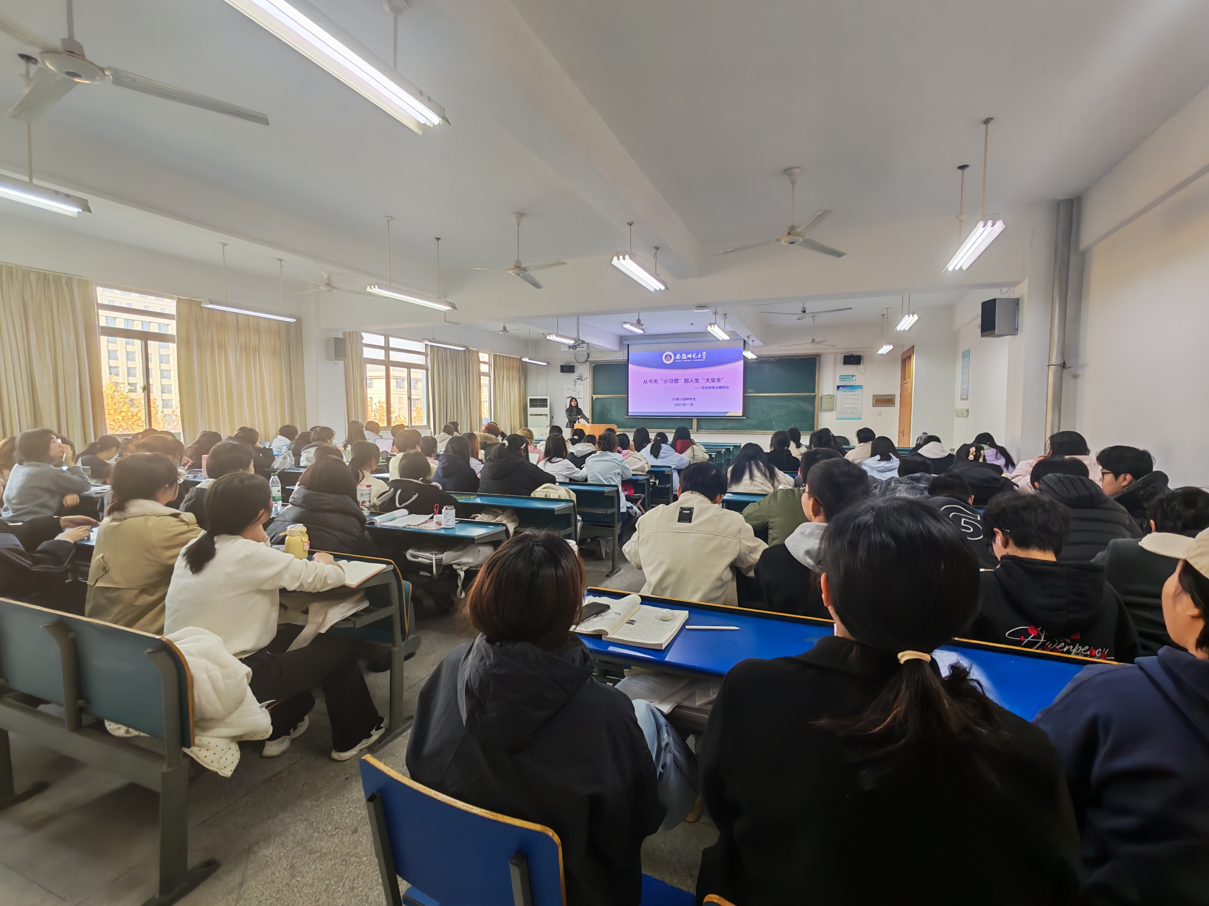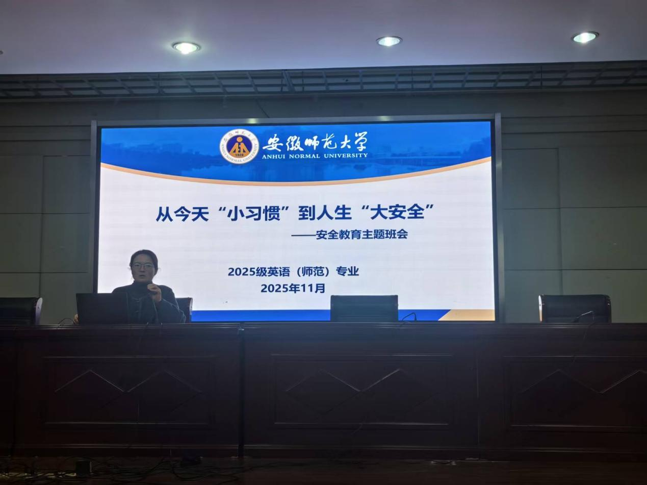 为进一步增强学生的安全意识,提升自我保护能力,筑牢校园安全防线,近日,外国语学院2025级本科生组织开展了以“从今天‘小习惯’到人生‘大安全’”为主题的安全教育主题班会。班会由辅导员张玉楠、范明雨主讲。