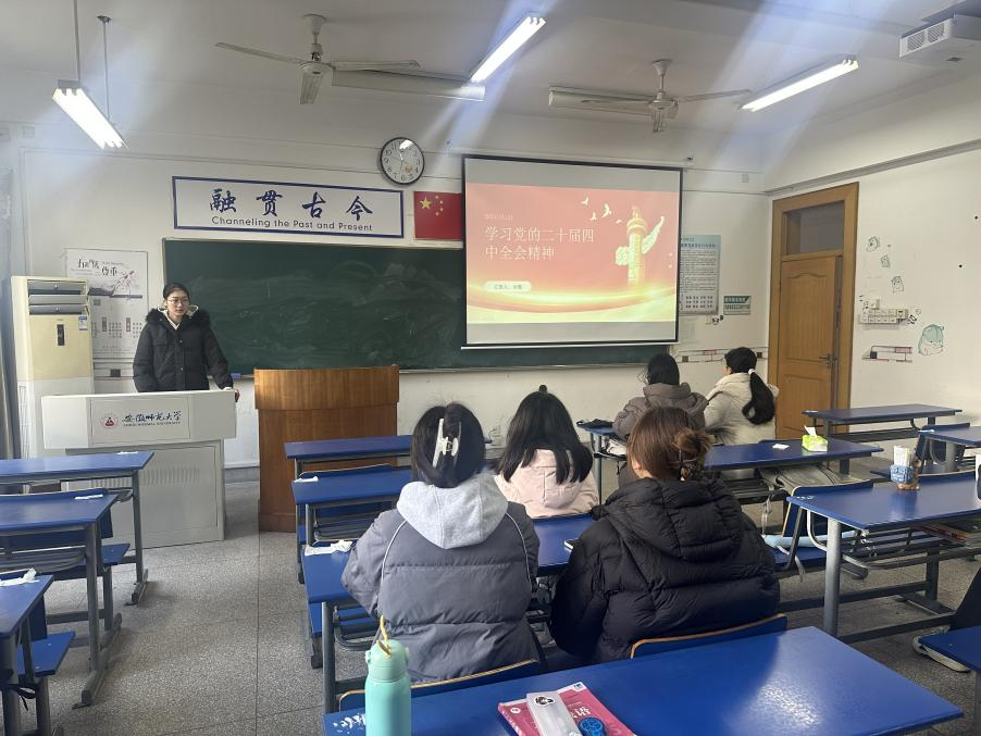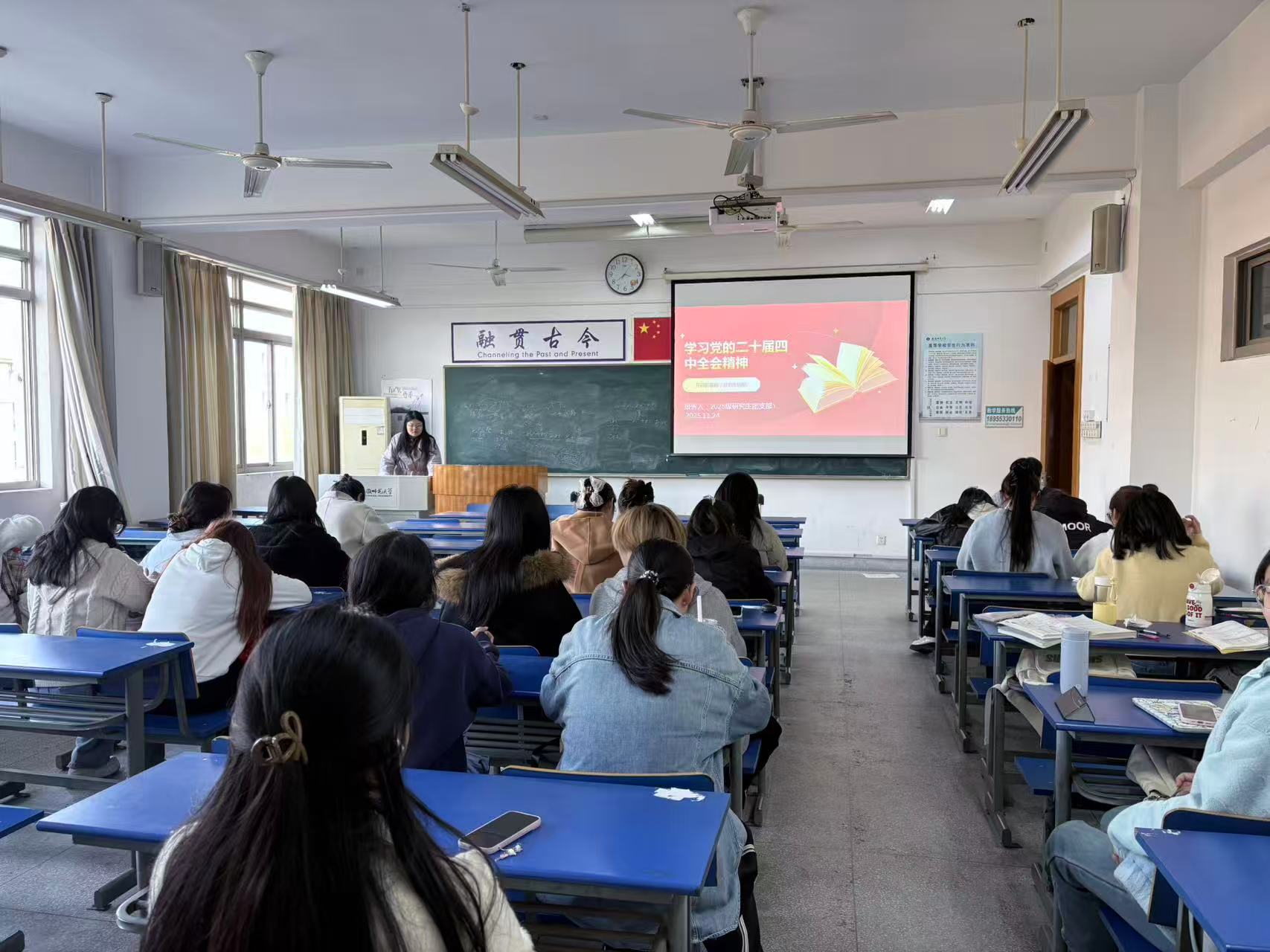 活动在学院各班级中拉开序幕,各团支部通过生动形象的演讲、精心制作的PPT以及悉心设计的活动环节,激励学院学子坚定胸中云志,厚植家国情怀,感悟时代重任,勇担时代使命。2023级英语(师范)6班团支部通过带领团员观看历史影像,学习英雄事迹,令在场团员更加深刻地认识到了党的二十届四中全会所做出的战略部署对国家发展的深远意义和重大影响;2025级日语团支部通过放映精心制作的PPT,积极结合当下时代社会环境,以专业践行为题,详细解读了党的二十届四中全会精神,引起了在场成员的深刻思考;2024级研究生第二团支部通过创造性地开展个人经历与职业规划相结合的发言环节,促使在场团员踊跃提出要将国家需求和社会需要与个人势能耦合,从而发挥自身优势、投入社会与国家发展。
