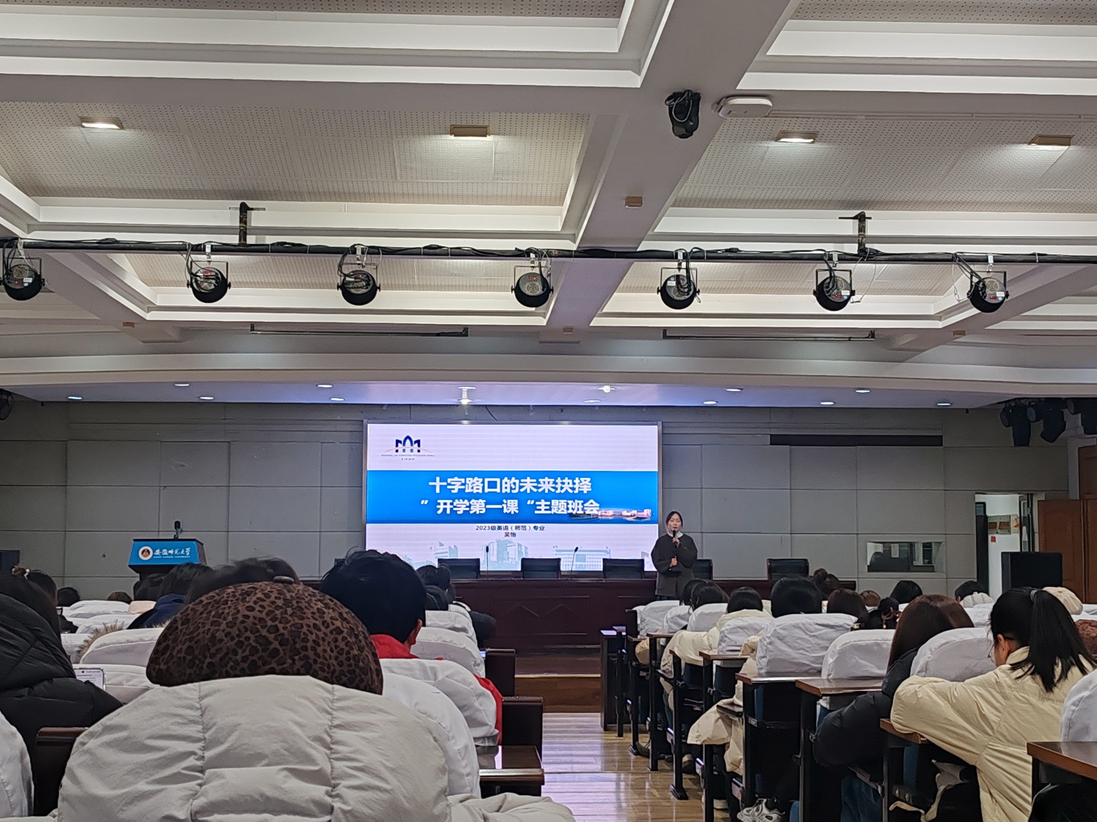 为引导学生明确新学期目标,科学规划未来发展方向,3月3日、3月5日,2023级本科生在学院二楼报告厅召开“开学第一课”主题班会。班会由辅导员吴怡、朱猛主持。2023级全体本科生参加。