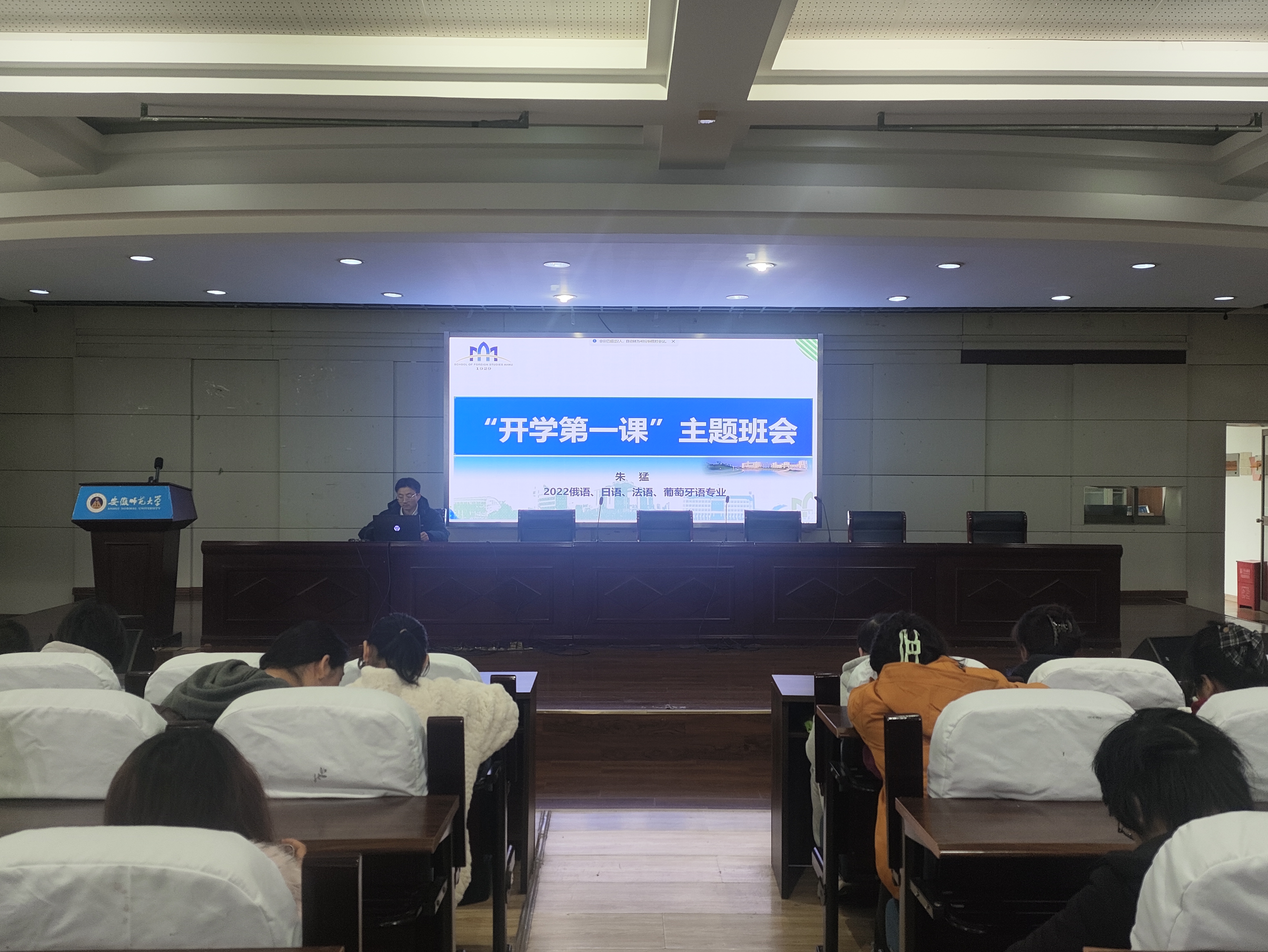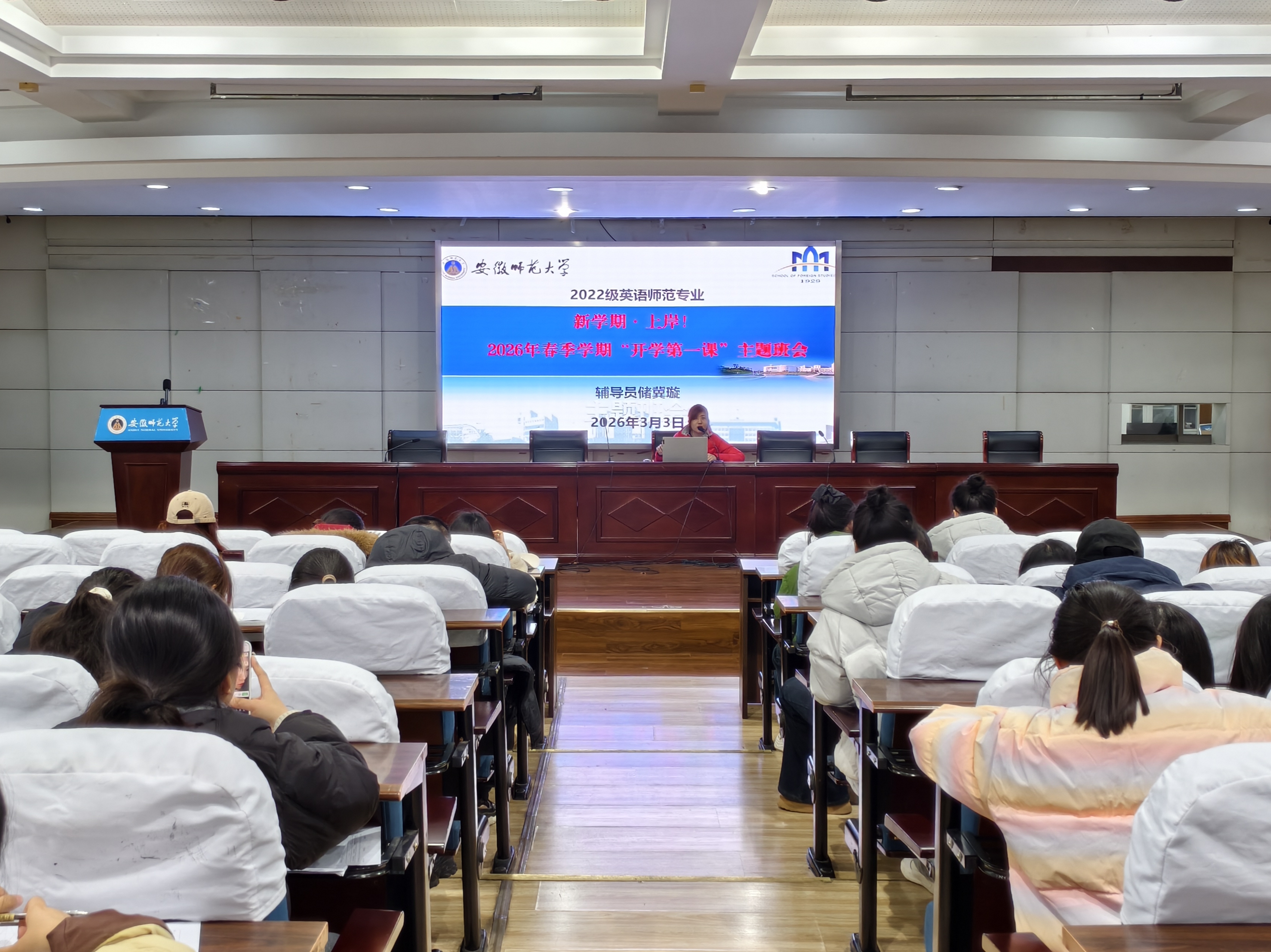 春风拂槛柳丝长,学府重开翰墨扬。为引导学生明确发展目标,快速进入校园生活状态,筑牢毕业季工作基础。3月5日上午,2022级本科生在学院二楼多功能报告厅召开“开学第一课”主题班会。本次班会由辅导员储冀璇、朱猛主持,2022级全体本科生参加。