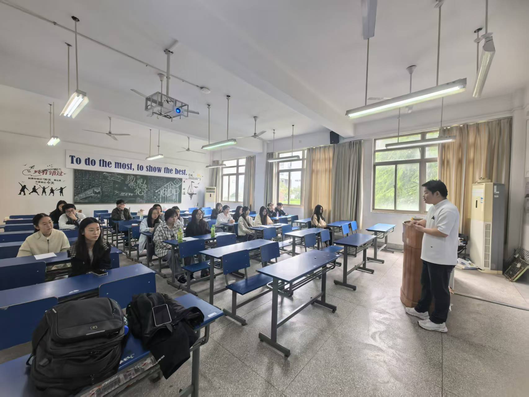 会上,许俊老师结合以往面试实例,引导同学们以面试官视角审视每个细节,进行逐一分析,得出关键环节主要有三个方面:口语,精神面貌,以及结构化问答。他强调,首先,口语能力是英语专业学生的“通行证”,是面试成功与否的关键因素,建议同学们提前准备、大量练习,要在板书、讲解和教态方面下苦功,面试时也要根据应聘学段选择教学内容,突出自己的亮点。在精神面貌方面,鼓励同学们做到声音洪亮、传达清晰、互动多样,并传授了如何克服紧张情绪、进行眼神接触的实用技巧。在结构化问答方面,许老师指出,面试官提问的本质是对面试者表达能力、专业知识、逻辑思维和应变能力的观察,即判断面试者是否具备一定成长潜力,所以鼓励同学们在求职时积极展示就业意向,回答问题做到言之有物、果断干练、坦率有礼。