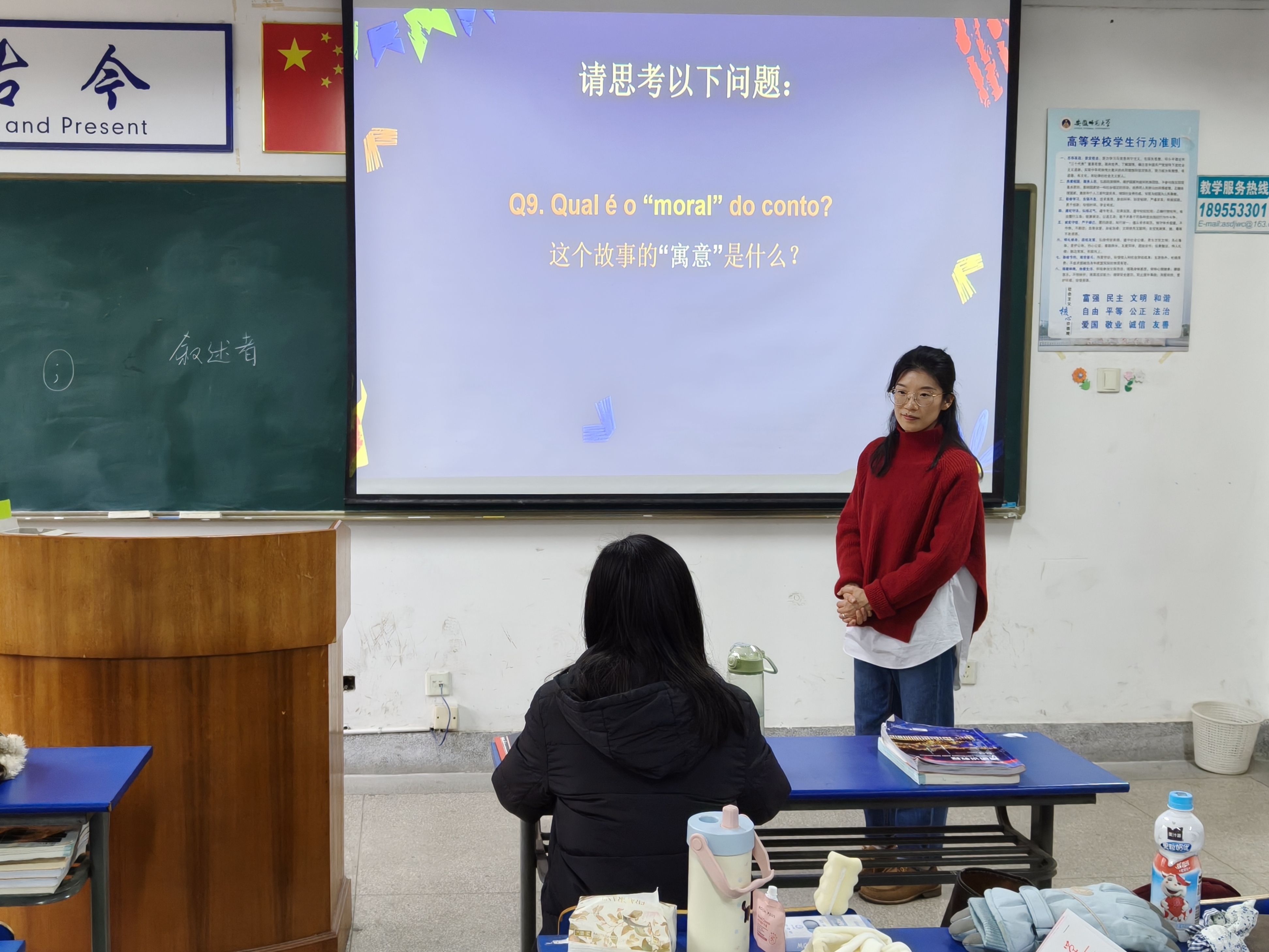 活动现场气氛热烈,师生互动深入,展现出浓厚的思辨氛围。领读教师或从作家生平与时代背景切入,或借助问题引导、片段赏析与多媒体展示,层层推进文本解读,启发同学们从叙事结构、象征隐喻及文化内涵等维度深入理解作品。同学们积极回应提问,踊跃分享阅读感受,在交流中碰撞思想火花。无论是《牧羊少年奇幻之旅》中“天命”与勇气的追寻,《红笑》对战争与人性的冷峻审视,还是《歌剧魅影》中爱与占有的辩证,均在师生共读中激发出对生命、社会及跨文化认知的深层思考。